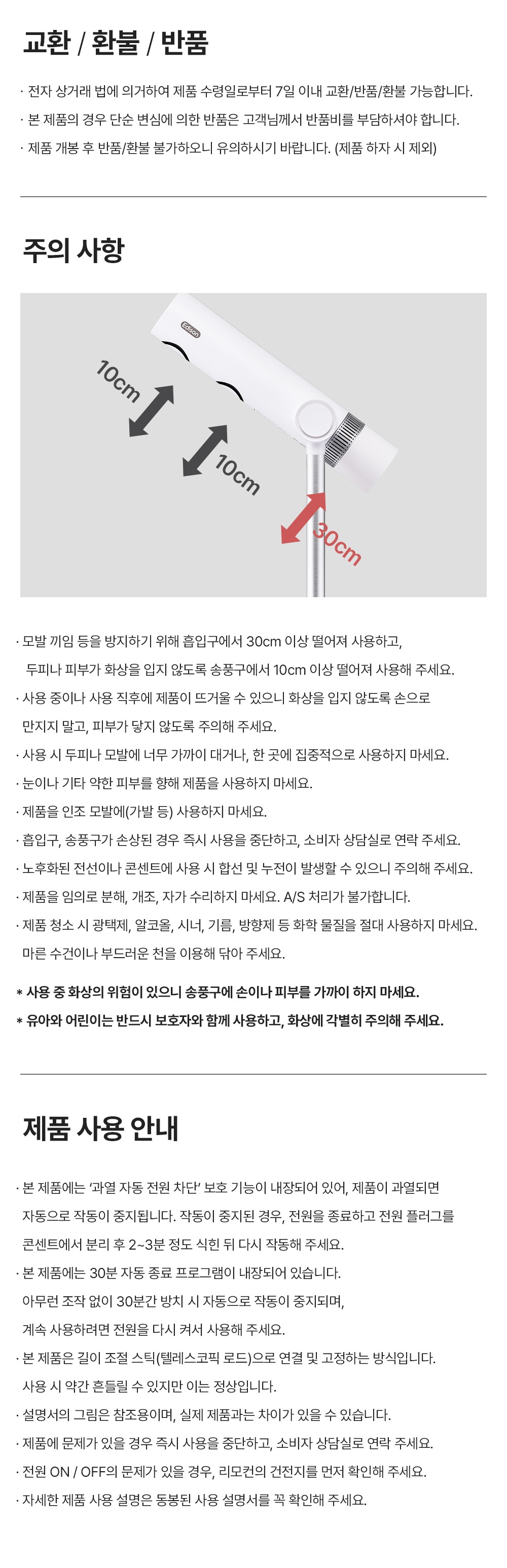 - 고객 변심으로 인한 교환/반품은 상품 수령 후 14일 이내 가능합니다.