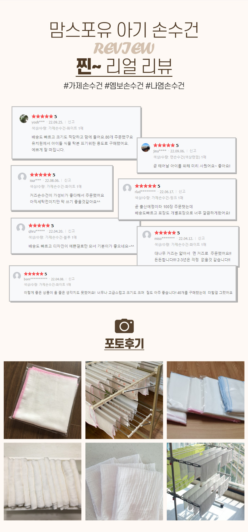 맘스포유 신생아 유아 아기 대나무 거즈 가제손수건 100% 국내생산