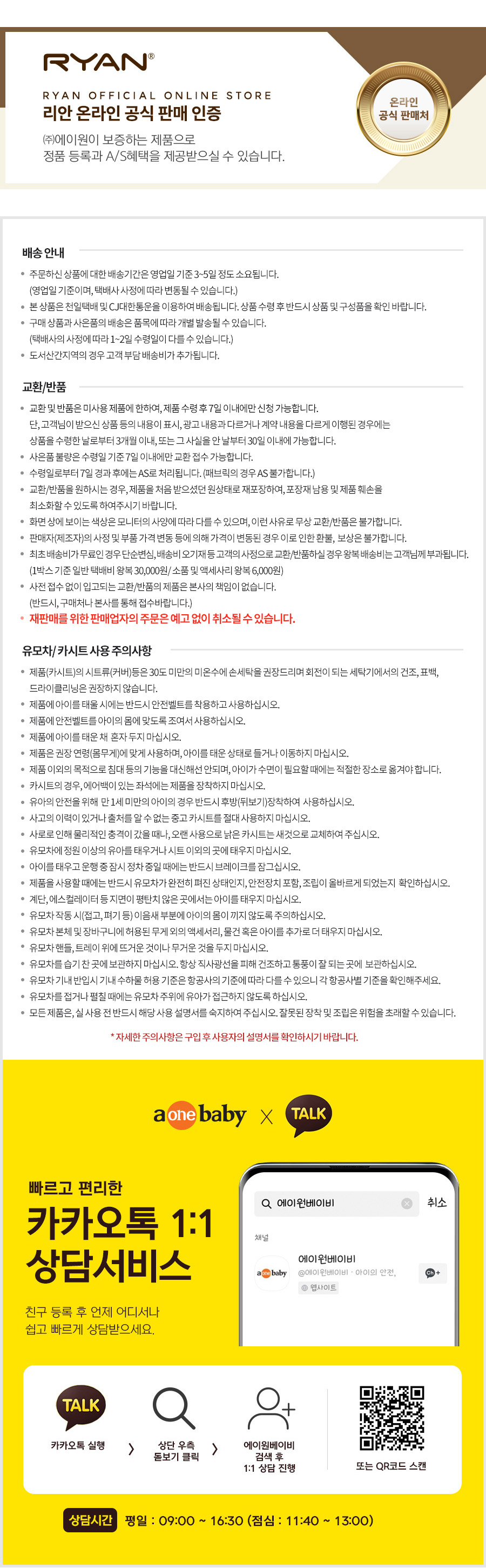 - 고객 변심으로 인한 교환/반품은 상품 수령 후 14일 이내 가능합니다.